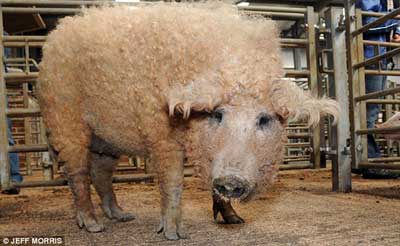 這只名叫伊麗莎白的豬是一個稀有的奧地利品種,由于長著一身酷似綿羊的卷毛,在近日的拍賣會上引起眾多關(guān)注。很多人競相出價,最后一個農(nóng)民Tim Fitton出價250英鎊買下了它,并將之送給女兒。