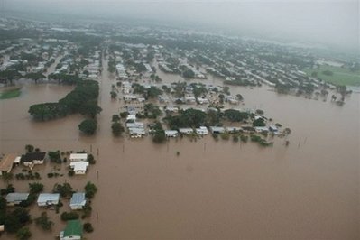 澳大利亞北部則是一夜之間洪水泛濫,350厘米的雨量導(dǎo)致大水沖進(jìn)城鎮(zhèn),造成河水高漲。昆士蘭幾乎全成了災(zāi)區(qū),最近兩次颶風(fēng)所帶來的暴雨淹沒了100萬平方公里的土地與3000民宅。蔗田與畜牧業(yè)也遭受洪水肆虐,數(shù)以萬計的牲畜死亡。