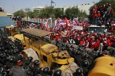 這次示威活動已經(jīng)迫使阿披實將其一周一次的議會會議易地,并延期至24日下午。阿披實表示,他相信安全力量會處理好這次集會事件,并強調他將在25日恢復在國會的工作。