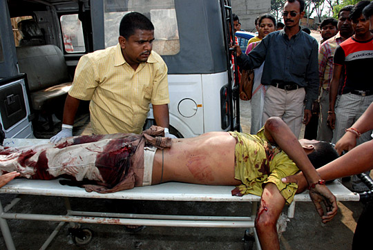 警方表示,第一起爆炸發(fā)生在當(dāng)?shù)貢r間下午2時左右,古瓦哈蒂市區(qū)的Maligaon商場,當(dāng)時正逢學(xué)生放學(xué)和購物群眾擁擠時刻,一輛停放路邊的機(jī)車突然發(fā)生強(qiáng)烈爆炸,當(dāng)場炸死6人,隨后有一人傷重不治,另約有30人受傷,。