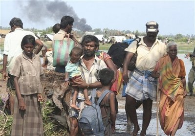 之前政府軍攻打猛虎組織,許多被困平民逃離猛虎組織控制。斯里蘭卡軍方稱,20日約有2.5-3.5萬平民逃離猛虎組織控制區(qū)。