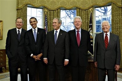 中新網(wǎng)1月8日電 據(jù)美國媒體報道,美國當(dāng)選總統(tǒng)奧巴馬7日稱,他與布什以及三位前總統(tǒng)克林頓、老布什和卡特共進午餐將是一次“非同尋常的聚會”。