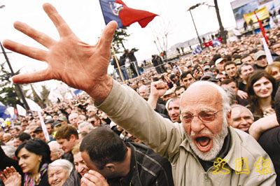 中新網(wǎng)4月10日電 據(jù)香港《文匯報》報道,格魯吉亞首都第比利斯9日有至少6萬人上街示威,要求總統(tǒng)薩卡什維利下臺。反對派領袖指摘他獨攬大權,以及違反他于2003年憑借玫瑰革命上臺時作出的改革承諾,矢言每天都會在國會外示威,直至他下臺。