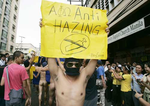 菲律賓首都馬尼拉的街頭2日傳出尖叫的歡呼聲,不是什么大明星出現(xiàn),而是當(dāng)?shù)匾凰髮W(xué)兄弟會(huì)的成員,以裸奔的方式抗議高漲的學(xué)費(fèi),這種犧牲色相的抗議方式馬上引來(lái)眾人圍觀,差點(diǎn)引發(fā)當(dāng)?shù)仳}亂。