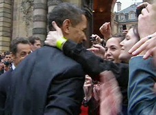 奧巴馬及其妻子米歇爾抵達(dá)法國東部城市斯特拉斯堡參加北約領(lǐng)導(dǎo)人峰會(huì)時(shí),受到當(dāng)?shù)厝说臒崃覛g迎。在奧巴馬夫婦與人群握手時(shí),斯特拉斯堡大學(xué)學(xué)生Cecilia Dervogne上前要求得到一個(gè)禮節(jié)性親吻,但在薩科齊出言鼓勵(lì)之前,奧巴馬并沒有同意。