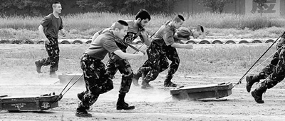 在蘭州軍區(qū)特種大隊綜合訓(xùn)練場,氣溫高達36℃,但中巴“兄弟連”官兵的訓(xùn)練熱情依然高漲。