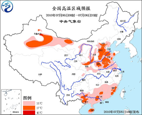 中央氣象臺7月5日18時繼續(xù)發(fā)布高溫黃色預警: