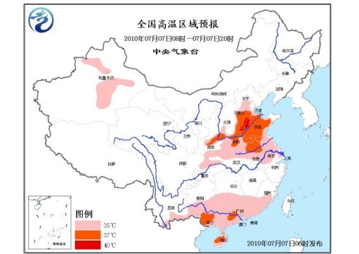 中新網(wǎng)7月7日電 中央氣象臺7日清晨6時繼續(xù)發(fā)布高溫橙色預(yù)警,氣象臺也指出,未來三天,江南漢水江淮有較強(qiáng)降水,華北黃淮華南等地有高溫。