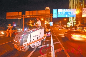 本報(bào)訊(記者倪明、王鶴)從昨日22時(shí)開始,內(nèi)環(huán)路南田路入口至江灣橋南出口,黃埔大道放射線出口段兩處路段約4公里全封閉施工,施工單位將趁著周末和單雙號限行,交通量相對較少的機(jī)會24小時(shí)刨鋪瀝青,爭取在下周一白天重新開放封閉路段。昨晚10時(shí)07分,記者驅(qū)車前往南田路入口,只見電子提示牌上已閃現(xiàn)封閉通知,沿路可見懸掛的車輛繞行指引提示牌。在現(xiàn)場交警的指揮下,交通秩序尚好。交警人士透露,大修啟動(dòng)后,馬上迎來單雙號演練,對交通影響不大,但單雙號演練結(jié)束后,廣州交通將面臨考驗(yàn)。