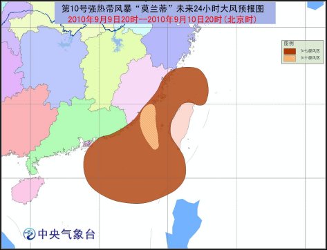 受熱帶風(fēng)暴和西南季風(fēng)共同影響,9月9日20時(shí)到10日20時(shí),巴士海峽、巴林塘海峽、臺(tái)灣海峽、南海北部、臺(tái)灣西部和南部沿海、福建中南部沿海、廣東沿海將有7-8級(jí)大風(fēng),“莫蘭蒂”中心經(jīng)過的附近海面或地區(qū)的風(fēng)力有9-11級(jí),陣風(fēng)可達(dá)12-13級(jí);浙江東部沿海和南部、福建、廣東中東部和西南部、廣西南部、海南、臺(tái)灣等地有大雨或暴雨,其中,福建東南部、臺(tái)灣南部等地局部有大暴雨。