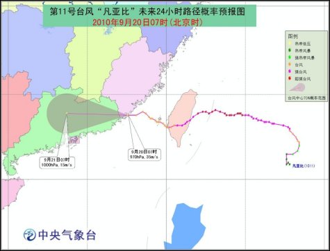 中央氣象臺(tái)預(yù)計(jì),“凡亞比”將以每小時(shí)20公里左右的速度向繼續(xù)偏西方向移動(dòng),強(qiáng)度逐漸減弱。