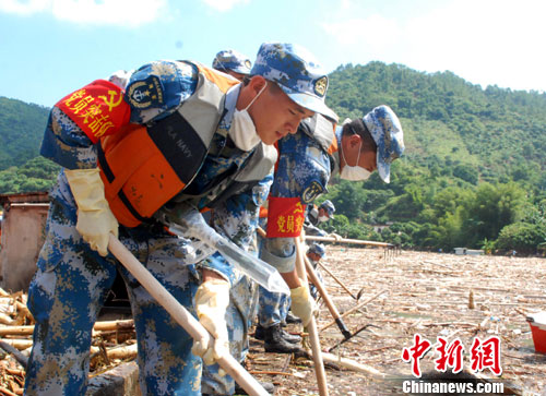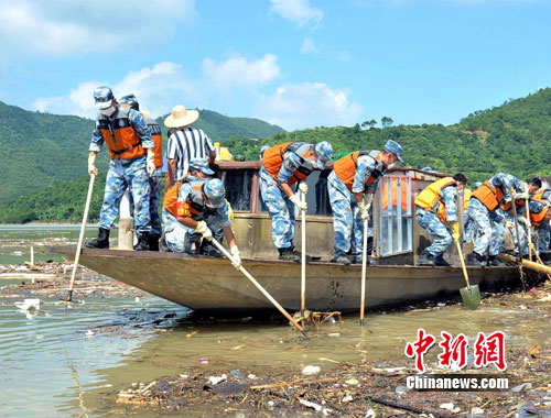 從昨夜開(kāi)始,前期到達(dá)的部分官兵及工程車輛在高州重災(zāi)區(qū)馬貴鎮(zhèn),疏通道路、搜索失蹤人員、搶救物資;工兵分隊(duì)奔赴信宜市對(duì)危險(xiǎn)山體進(jìn)行爆破,部分陸戰(zhàn)隊(duì)員對(duì)廣東省第三大水庫(kù)高州水庫(kù)水面漂浮物進(jìn)行清理。指揮員張文勝上校告訴筆者,目前工程機(jī)械分隊(duì)連夜打通長(zhǎng)約1公里被泥石流堵塞的道路,清污的官兵已打撈起數(shù)十噸水面污染物,工兵分隊(duì)正在對(duì)爆破體進(jìn)行前期論證。 完