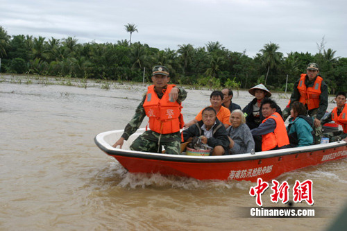 13時(shí)許,萬(wàn)寧市萬(wàn)城鎮(zhèn)紅關(guān)村暴雨持續(xù)不斷,1000余名村民需緊急轉(zhuǎn)移撤離。武警三亞市支隊(duì)奉命派出120名官兵,攜帶救生衣、雨衣等搶險(xiǎn)物資驅(qū)車趕往紅關(guān)村疏散轉(zhuǎn)移被困村民。由于村民躲在家里不愿上救生艇,官兵們一邊耐心說(shuō)服、勸導(dǎo),一邊協(xié)同地方領(lǐng)導(dǎo)組織村民向安全地帶轉(zhuǎn)移。經(jīng)過(guò)將近6個(gè)小時(shí)的緊急撤離,所有被困村民安全轉(zhuǎn)移到安全地帶。