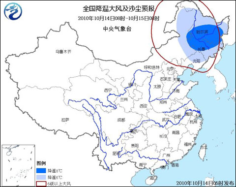 中央氣象臺預(yù)計,受冷空氣東移南下影響,未來三天,內(nèi)蒙古中東部、華北、東北等地氣溫將先后下降4~6℃,部分地區(qū)降溫幅度可達(dá)8℃以上;上述大部地區(qū)并伴有4~6級風(fēng)。