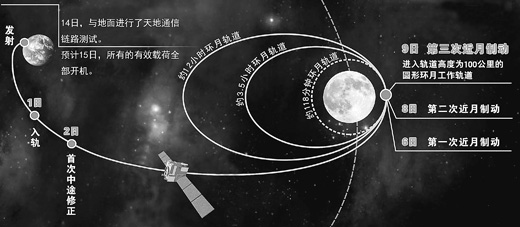 100公里環(huán)月圓軌道是嫦娥二號衛(wèi)星的“使命軌道”。正是在這個軌道上,“嫦娥二號”要經(jīng)歷半年的對月科學(xué)探測任務(wù)。
