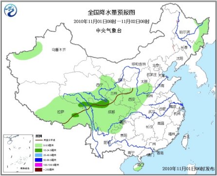 11月1日08時(shí)至2日08時(shí),新疆南疆西北部、青海南部和東部、西藏中東部、甘肅中南部、寧夏南部、川西高原北部、黑龍江東部、吉林東部等地的部分地區(qū)有小到中雨(雪)或雨夾雪,其中,西藏東北部、青海東南部、川西高原北部的局地有大到暴雪;西北地區(qū)東南部、山西南部、河南西部和北部、湖北西北部、四川大部、重慶西部和北部、云南西北部、貴州西北部以及海南大部等地有小到中雨或陣雨;內(nèi)蒙古東北部、東北等地有4~6級(jí)風(fēng);臺(tái)灣海峽、臺(tái)灣以東洋面和以南海域、南海東北部和中部海域?qū)⒂?~8級(jí)、陣風(fēng)9級(jí)的東北風(fēng),渤海將有6~7級(jí)、陣風(fēng)8級(jí)的東北風(fēng);黃海北部和中部海域?qū)⒂?~7級(jí)、陣風(fēng)8級(jí)的偏北風(fēng),黃海南部海域、東海大部海域?qū)⒂?~6級(jí)偏北風(fēng)。