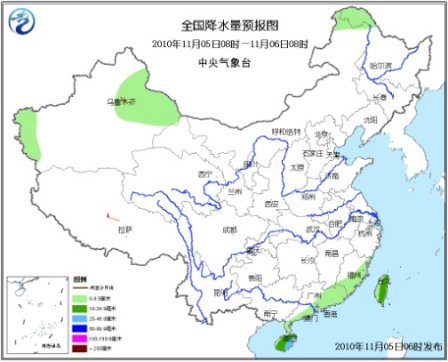 中央氣象臺(tái)預(yù)計(jì),今天白天到夜間,新疆東部和西南部、內(nèi)蒙古東北部局部、黑龍江西北部等地有小雨(雪)或雨夾雪;福建東部和南部、廣東南部和東部、海南、臺(tái)灣等地有小到中雨或陣雨,其中,海南東南部的局地有大雨;新疆東部、甘肅西部、內(nèi)蒙古大部、東北中北部等地有4~6級(jí)風(fēng)。