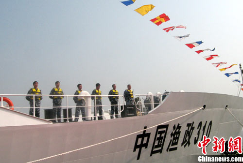中國漁政310船入列后,即開始了它的首航。據(jù)透露,該船將開赴東海,前往釣魚島海域執(zhí)行護漁任務。
