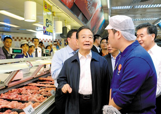 溫家寶邊看邊問,了解物價(jià)變化對市民生活的影響。他說,市場供求和物價(jià)關(guān)系群眾的切身利益,必須高度重視。國務(wù)院正在擬定措施,抑制價(jià)格過快上漲。他叮囑廣州市有關(guān)負(fù)責(zé)人要千方百計(jì)保持供貨渠道暢通,保證市場供應(yīng),加強(qiáng)監(jiān)管,維護(hù)市場秩序。