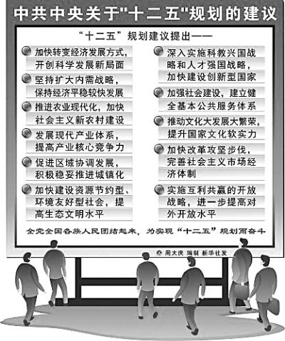 黨的十七屆五中全會通過的《中共中央關(guān)于國民經(jīng)濟(jì)和社會發(fā)展第十二個五年規(guī)劃的建議》,為我國“十二五”時期奪取全面建設(shè)小康社會新勝利、開創(chuàng)中國特色社會主義事業(yè)新局面,提供了綱領(lǐng)性建議和指導(dǎo)性方針!笆濉睍r期,是在科學(xué)發(fā)展的道路上繼續(xù)前行,開創(chuàng)科學(xué)發(fā)展新局面的重要時期。