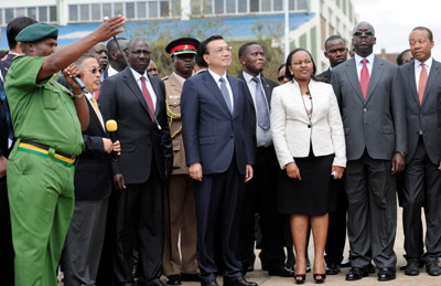 中新網(wǎng)內(nèi)羅畢5月11日電(記者 郭金超) 李克強(qiáng)11日在肯副總統(tǒng)盧托陪同下到國(guó)家青年服務(wù)隊(duì)參觀。這里供學(xué)員實(shí)習(xí)的鉆井、起重、消防等裝備不少來自中國(guó)。李克強(qiáng)攀上一輛移動(dòng)維修車查看并詢問維護(hù)等服務(wù)情況。他說,要用好中國(guó)裝備和技術(shù)優(yōu)勢(shì),幫助非洲青年提升職業(yè)技能,促當(dāng)?shù)鼐蜆I(yè)。