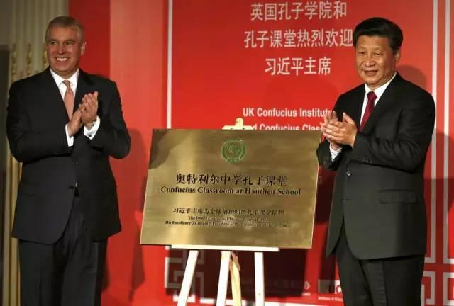 習近平在英國約克公爵安德魯王子陪同下抵達開幕式現(xiàn)場,共同參觀了全英孔子學院和孔子課堂成果圖片展,并觀看孔子學院和孔子課堂學生匯報演出。學生們用中文演唱的《感恩的心》、朗誦的《念奴嬌·追思焦裕祿》博得現(xiàn)場陣陣掌聲。