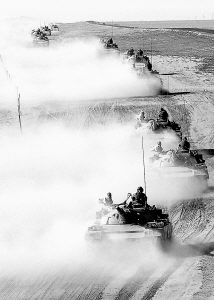 此時此刻,在中國,該師政委鄒運明率領(lǐng)鐵甲雄師正沖出燕山之麓,向內(nèi)蒙古草原演兵場疾馳。