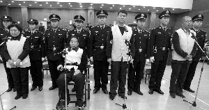 上午8時(shí),法庭開始公開審理,可容納400人的大審判庭內(nèi)座無虛席。原三鹿集團(tuán)董事長田文華、副總經(jīng)理王玉良、副總經(jīng)理杭志奇、原奶事業(yè)部總經(jīng)理吳聚生4名高管出庭受審。其中,王玉良坐輪椅出庭。以單位犯罪成為被告的三鹿集團(tuán),則由工會(huì)主席冉偉光作為訴訟代表人出庭。