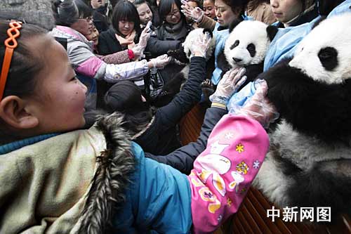 中新社成都一月二十七日電 (記者 鄒輝)中國農(nóng)歷大年初二,來自都江堰的十七名因汶川大地震新增的“三孤”人員,受邀來到成都大熊貓繁育研究基地:參觀大熊貓產(chǎn)房、品嘗大熊貓專用“窩頭”、同大熊貓親密接觸合影留念……度過了一個獨具意義的春節(jié)。