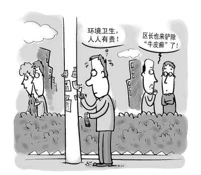 當(dāng)日上午,濟(jì)南經(jīng)十路槐蔭段,一支特殊的勞動(dòng)隊(duì)伍吸引了眾多行人的目光。從擔(dān)山立交橋到槐蔭區(qū)政務(wù)中心,近4公里路段,沿路看去,都是忙碌的工作人員。他們有的擦護(hù)欄,有的鏟除非法小廣告,有的掃綠化帶里的污物,有的蹲下身擦路面上的痰漬。旁邊幾位健身的老人見狀,主動(dòng)加入到了清理垃圾的行列。在兒童醫(yī)院東側(cè),槐蔭區(qū)區(qū)長(zhǎng)楊峰手拿一個(gè)噴壺和一把小鏟子,用心清理非法小廣告。看到一家電信營(yíng)業(yè)廳前的電線桿上貼滿小廣告,他先是用噴壺噴水,把紙弄濕,然后用小鏟子快速鏟凈。不多會(huì)兒,桿子上的非法小廣告消失殆盡。接下來(lái),他又用抹布把桿子擦得干干凈凈。