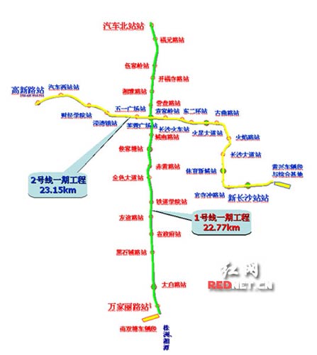 根據(jù)國家發(fā)改委批復(fù)的長沙市城市快速軌道交通近期建設(shè)規(guī)劃,2008-2015年,首先建成軌道交通1號(hào)線一期工程和2號(hào)線一期工程。
