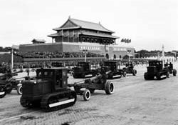 曾參與新中國多次國慶閱兵的北京軍區(qū)原炮兵司令部處長張軍告訴記者,開國大典受閱炮兵部隊裝備,全是從日本侵略軍和國民黨軍隊手里繳獲的戰(zhàn)利品,其中參加閱兵的90野炮和38野炮,不僅身管短,兩個輪子有的還是木輪子包鐵皮的。盡管當時我軍武器裝備還很落后,但場面恢宏、壯觀,大氣磅礴,全體受閱將士以昂揚精神狀態(tài)、威武雄壯陣容出現(xiàn)在國人面前,并向世界發(fā)出了宣言:中國人民解放軍有信心、有能力保衛(wèi)新生的人民政權!正因為如此,開國大閱兵具有極為重要的歷史意義。