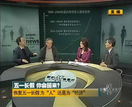劉思敏:如果有證據(jù)證明,全中國就只有蔡教授最聰明,這個結(jié)論就成立。為什么呢?因為我們不否認(rèn),盡管現(xiàn)在有些人說,希望否認(rèn)當(dāng)初設(shè)立黃金周是為了拉動內(nèi)需。我覺得根據(jù)我的研究,當(dāng)初的最初目的就是為了拉動內(nèi)需。那個時候是1999年亞洲金融危機(jī)的時候,我們的確把黃金周作為一個工具使用了,那個時候是全國的共識,至少是國務(wù)院的共識,否則不會這么實行,F(xiàn)在在全球性的金融海嘯的背景下,全國那么多人士提出恢復(fù)五一黃金周,那么多省份,包括黃華華省長也提出,而且認(rèn)識到對拉動經(jīng)濟(jì)的作用。
