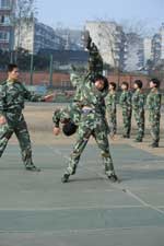 在女子特警隊(duì)營區(qū),一隊(duì)新入伍的女戰(zhàn)士正在訓(xùn)練。據(jù)陪同我們的隊(duì)長王安斌介紹,特警隊(duì)擔(dān)負(fù)著四川總隊(duì)每年的女兵新訓(xùn)任務(wù),女特警隊(duì)員就是從這里層層選拔出來的。每年新兵訓(xùn)練結(jié)束時,特警隊(duì)通過組織對全體新戰(zhàn)士進(jìn)行政治思想摸底,文化水平、心理素質(zhì)測試及軍事體育、擒敵技術(shù)、戰(zhàn)術(shù)等科目綜合考核,按照層層選拔、優(yōu)中選優(yōu)的原則,遴選出軍事過硬、素質(zhì)全面的新同志補(bǔ)充到女子特警隊(duì)。作為一名女子特警隊(duì)員,她們?nèi)腙?duì)后還必須在心理上、生理上承受常人難以想象的磨礪,經(jīng)過特種戰(zhàn)術(shù)、攀登、射擊、擒敵等20多個科目的訓(xùn)練,過好體能關(guān)、心理素質(zhì)關(guān)、特戰(zhàn)技能關(guān),才能真正實(shí)現(xiàn)脫胎換骨的轉(zhuǎn)變,成為一位名符其實(shí)的特戰(zhàn)隊(duì)員,而這一切都是依靠特殊的訓(xùn)練來實(shí)現(xiàn)的。