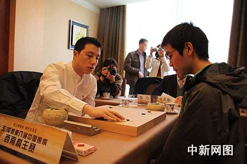 中新網(wǎng)成都3月16日電 今日上午,“玉溪杯”第八屆中國圍棋西南棋王賽決賽展開廝殺,此前3天時間里一路連挑黨毅飛、王檄和謝赫三員頂級棋手于馬下的棋壇小將古靈益,在決賽中遭遇日前剛剛榮膺LG冠軍的古力。經(jīng)一小時余鏖戰(zhàn),古靈益在劣勢下突然使出絕殺,最終實現(xiàn)大翻盤,成功第三次蟬聯(lián)“西南王”。至此,中國西南地區(qū)最高等級專業(yè)圍棋比賽圓滿落下帷幕。
