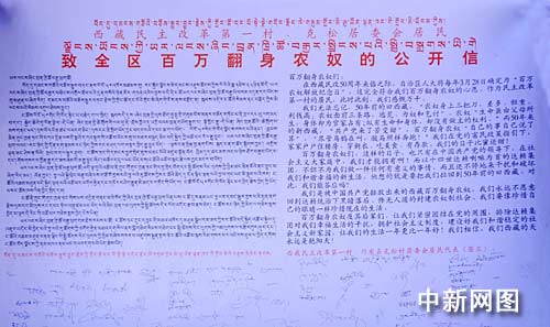 中新網(wǎng)拉薩3月27日電(記者柳俊武)3月28日,西藏各族民眾將迎來首個(gè)“百萬農(nóng)奴解放紀(jì)念日”,西藏自治區(qū)也將在拉薩隆重紀(jì)念西藏民主改革50周年。27日晚,西藏民主改革第一村——山南地區(qū)克松居委會(huì)居民,懷著激動(dòng)的心情,向中新社、中新網(wǎng)寄來了他們致全區(qū)百萬翻身農(nóng)奴的一封公開信。全文如下:
