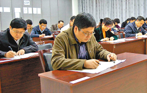 據(jù)悉,此次考試一共設置了1個市級考場和34個區(qū)縣考場,考生為2008年8月1日至2009年3月1日期間,全市提拔擔任或由同級非領導職務轉任領導職務的干部(不含由各級人大常委會任命、決定任命和批準任命的職務)。此外,還有部分因故缺席2008年秋季考試的領導干部。