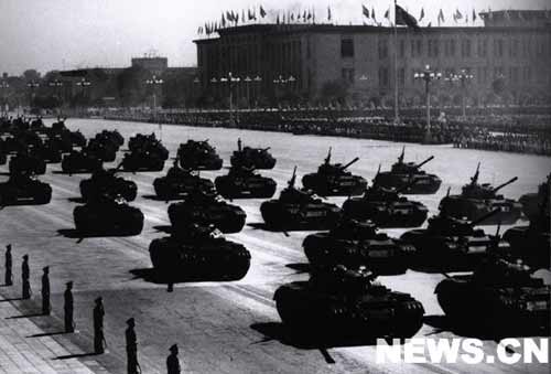 向著工業(yè)化飛躍前進(jìn)的偉大祖國,給了人民解放軍各種現(xiàn)代化武器裝備。受閱各部隊的裝備中最新式自動步槍、大炮、坦克、高速度的噴氣殲擊機(jī),都是祖國制造出來的。