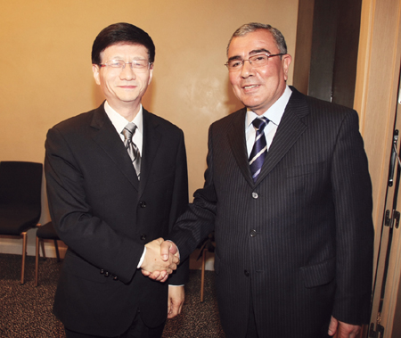 國務(wù)委員、公安部部長孟建柱5月18日下午在俄羅斯葉卡捷琳堡會見了烏茲別克斯坦內(nèi)務(wù)部部長馬特留波夫。