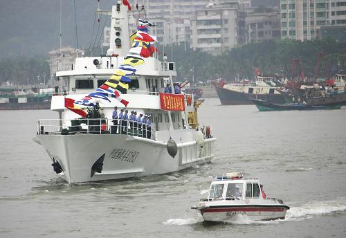 5月16日上午,廣東省最大的漁政船“中國漁政44183號”從珠海香洲碼頭鳴笛起航,開赴西沙群島。次日9時45分,與湛江市所屬的中國漁政44061船會合。19日兩船形成編隊開赴西沙海域。兩船在赴西沙群島途中,發(fā)現(xiàn)一艘國外船只在我國海域內(nèi)非法捕魚,我漁政執(zhí)法人員登船檢查,予以警告之后將其驅趕出中國海域。21日,這支船隊在西沙群島琛航島又增加了兩艘漁政船:中國漁政311船,中國漁政302船。當日14時30分,巡航船隊轉換編隊隊形,由中國漁政311船領航,中國漁政302船居中,中國漁政44183船在編隊右后方,中國漁政44061船在編隊左后方,形成人字形旗艦編隊,向東北方向以14海里/小時的航速巡航。