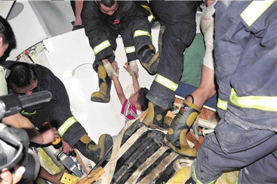 消防官兵用液壓起擴(kuò)器、撬棍等工具,撐開一些空間,冒著生命危險(xiǎn),采用徒手挖掘等方式,將困在廢墟下的4名群眾救出,其中一人不幸遇難。