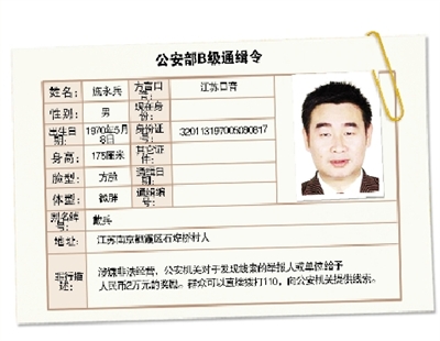 施永兵,曾用名戴兵,男,出生于1970年5月8日,江蘇南京棲霞區(qū)石埠橋村人,身份證號碼為320113197005080817。此人操江蘇口音,體型微胖,方臉,身高175厘米。公安機(jī)關(guān)以其涉嫌非法經(jīng)營,正在全力追捕。