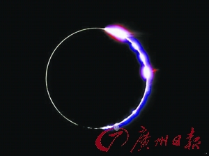 二、貝利珠璀璨奪目。緊接著出現(xiàn)一串發(fā)光的亮點(diǎn),像一串璀璨奪目的“珍珠”,它們高懸于漆黑的天空,這是日全食展現(xiàn)的又一件異寶——貝利珠,通常只出現(xiàn)一兩秒。