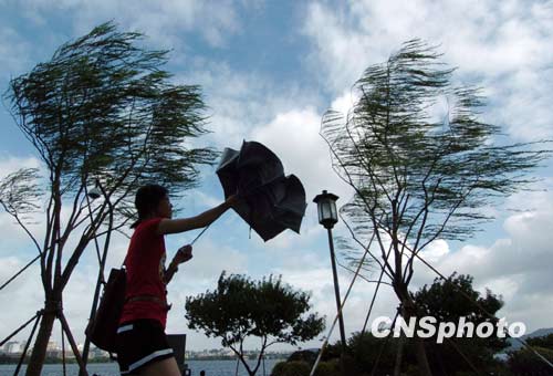 臺(tái)風(fēng)“莫拉克”繼續(xù)強(qiáng)勢(shì)挺進(jìn),影響的勢(shì)力范圍繼續(xù)擴(kuò)大。預(yù)計(jì)它將于明天向浙江中部到福建中部靠近,并可能在這一帶沿海登陸。 中新社發(fā) 溫嶺金云國 攝