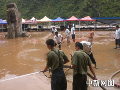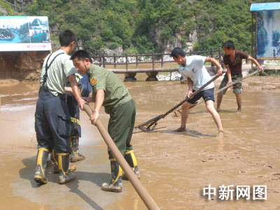 一到現(xiàn)場(chǎng),消防隊(duì)員就立即鋪設(shè)水帶。在專門消防器材的幫助下,消防隊(duì)員開始對(duì)廣場(chǎng)淤泥進(jìn)行清理。經(jīng)過艱苦奮戰(zhàn),通往景區(qū)的道路被打通,布滿淤泥的桃花谷廣場(chǎng)終于煥然一新,又露出了昔日干凈美麗的“面龐”。 完
