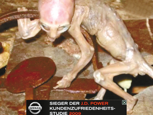 據(jù)德國《圖片報(bào)》8月24日報(bào)道,墨西哥電視臺(tái)近日公布了一條令人難以置信的消息,2007年5月在該國的一個(gè)農(nóng)場內(nèi),人們在一個(gè)動(dòng)物陷阱里發(fā)現(xiàn)了仍然活著的外星人寶寶!