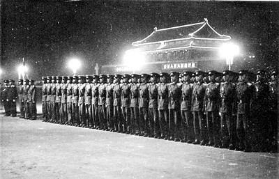 受檢的時(shí)刻終于來臨。1958年9月30日下午,我們“湘軍方隊(duì)”停止了訓(xùn)練,轉(zhuǎn)入受閱時(shí)的著裝和衛(wèi)生準(zhǔn)備,熨衣服、擦皮鞋、縫襯肩、釘領(lǐng)花、安肩章、洗澡、理發(fā)、刮胡須忙個(gè)不停。下午5時(shí),大家都穿上受閱著裝列隊(duì)檢查,全隊(duì)人員配帶的肩花都是中尉或上尉,這些平時(shí)曬得黑油油顯得有些老成粗放的“老兵”,一下子變得年青、標(biāo)致、威武了;在激動(dòng)心情的催促和新式著裝的反光照耀下,每個(gè)人的臉面變得白中帶紅、可親可愛了。