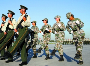 位置:女民兵方隊隊列排頭兵