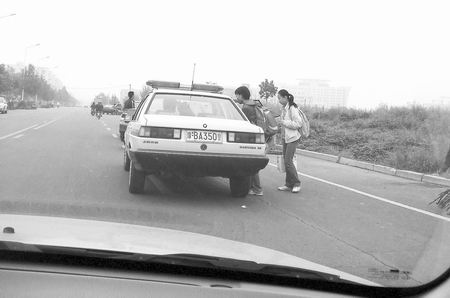 就在交警忙著疏通交通時(shí),一輛車(chē)牌號(hào)為豫OA028警的白色豐田轎車(chē)開(kāi)了過(guò)來(lái)。這輛警車(chē)看起來(lái)非常新,車(chē)頂上方紅白藍(lán)相間的警燈很是耀眼,車(chē)身上醒目地印有“法院”字樣。