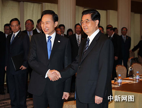 李明博說,明年韓國將舉辦20國集團峰會。中方對此給予的支持,韓方表示感謝,并希望繼續(xù)得到中國的合作。